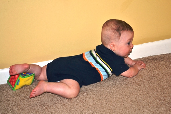 Hudson is growing up, sitting up, and constantly moving.